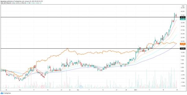 图 1.0 – UMS 对比 STI 在 3 个月内的价格波幅,资料来源:Tradingview