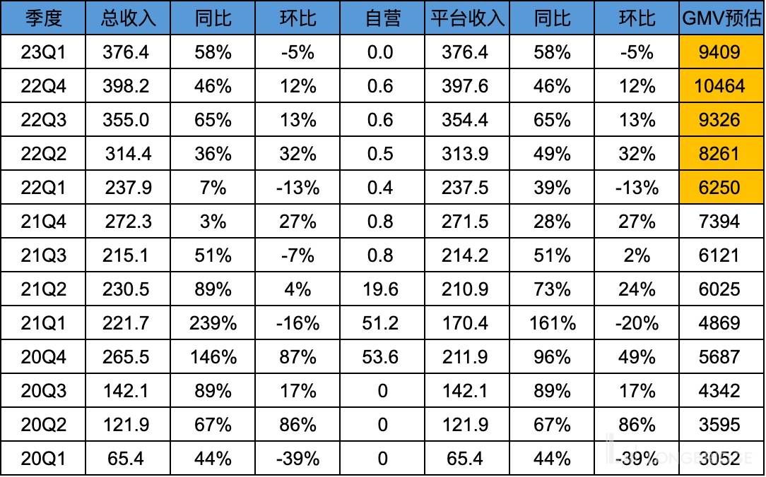 注:GMV 为预估,Q1 按 4% 的 take rate 计算预估。