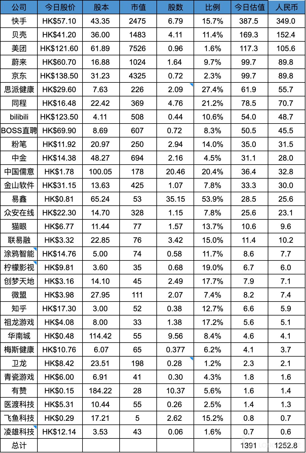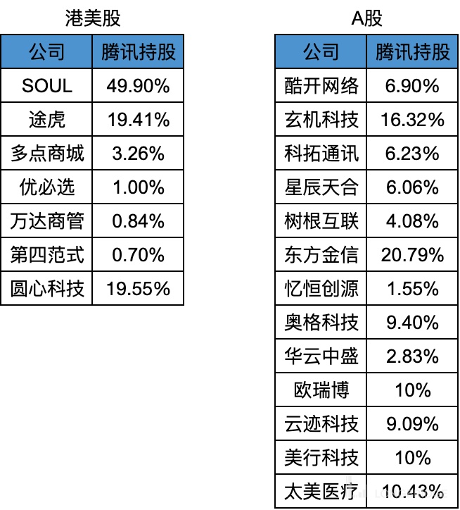 顺便夸下 A 股:任何公司每个季度都得公布财报,而且股东持股披露比港美股更详细,前十大股东和前十大流通股东都会披露,所以持股比例低于 5% 也很容易查询到。另外投资入股一般也会公告,所以腾讯在 A 股的投资很容易统计到。