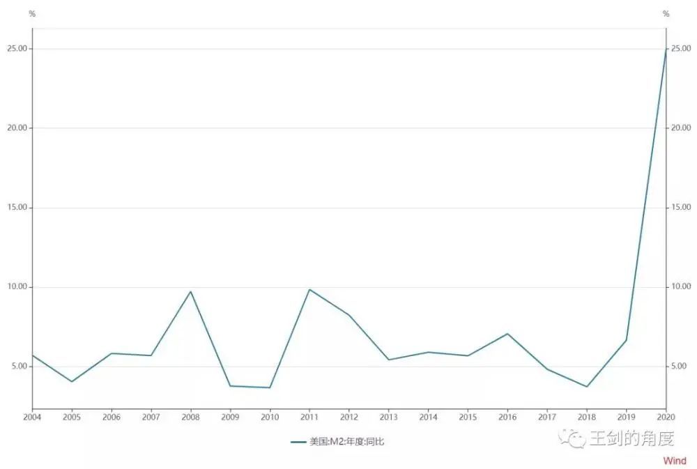 2021 年 3 月 11 日,美国总统拜登在白宫签署了总额达 1.9 万亿美元的经济刺激计划。按 1.9 万亿美元计,2021 年的 M2 还得再增长 12% 以上。