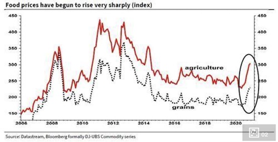 另一个客观而直接的现实是,去年由于供给端的生产受疫情打击,玉米为代表的全球农产品价格也出现了大幅上涨,只是我们国内存在国家扶持的春耕、收储和价格干预,老百姓没有受到影响罢了。