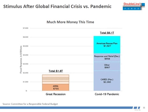 可见,超前消费在美国是不论贫富家庭都存在的现象,收入水平不低的美国人,银行账户里可能还不如中国一个普通白领。所以疫情期间,白宫释放了总规模超过 6 万亿美元的财政资金,其中相当一部分是给年收入不超过 7.5 万美元的家庭直接发现金,不发钱的话,有些家庭吃饭都成问题。平均一下,从去年 3 月到现在,一个美国人不用做任何事情,只是坐在家里,政府每个月就会发放相当于人民币 1.3 万元的现金。