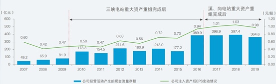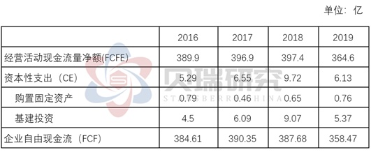 回到长江电力的案例,我们用企业经营活动产生的现金流量净额与资本性支出的差,来计算出自由现金流量。