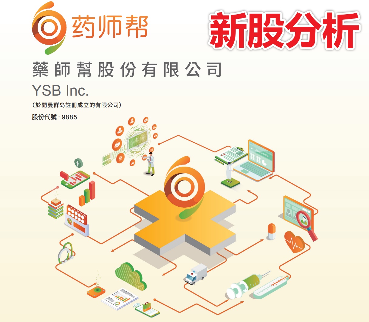 $YSB(09885.HK) ,成立于 2015 年,是国内院外医药产业最大的数字化综合服务平台,公司致力于用数字化赋能院外医药市场参与者,包括药企、药品分销商、药店以及基层医疗机构,将上游(药企及经销商)和下游(药店及基层医疗机构)连接起来,构建起一个生态系统,使得医药产业链上的各个参与者都能够聚集在药师帮这个大平台,让整个交易环节更加高效、安全。