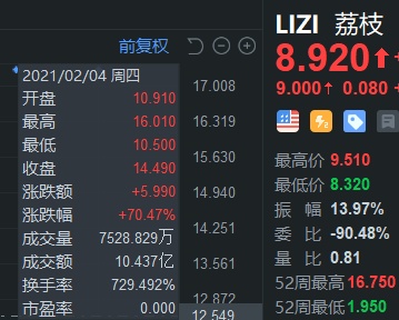 还记得中概妖股横行的一二月吗,当时的中概小盘股荔枝(LIZI)一晚上暴涨 70%,经过一段沉寂,现在小盘中概的 showtime 又回来了。