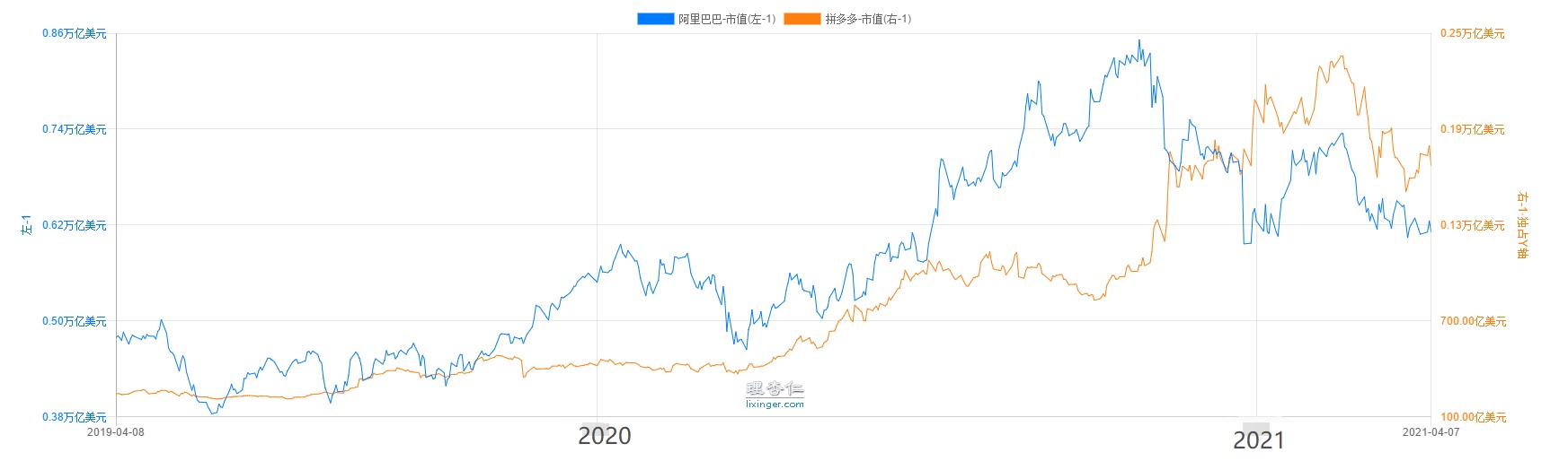 第二个因素拼多多崛起对阿里的挤压趋势也很明显,从印象流里总感觉阿里在自己的基本盘里被拼多多追的屁滚尿流,数据上今年一季度有数据称拼多多的日活第一次超越了手淘,成为全球电商领域日活第一的 APP。
