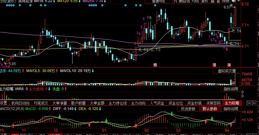 具体来说,从四月一号,讲金田和美锦,是盘整到了尾声。到假期结束后,6 号开盘,美锦开始了第一个涨停。7 号,美锦开盘冲高涨停,海特涨停。8 号,金田涨停。9 号,美锦涨停,海特差一分涨停。在这几天里,我和小伙伴们倒也没觉得有太多的不如意。欢声笑语不断。详情看前几天的帖。