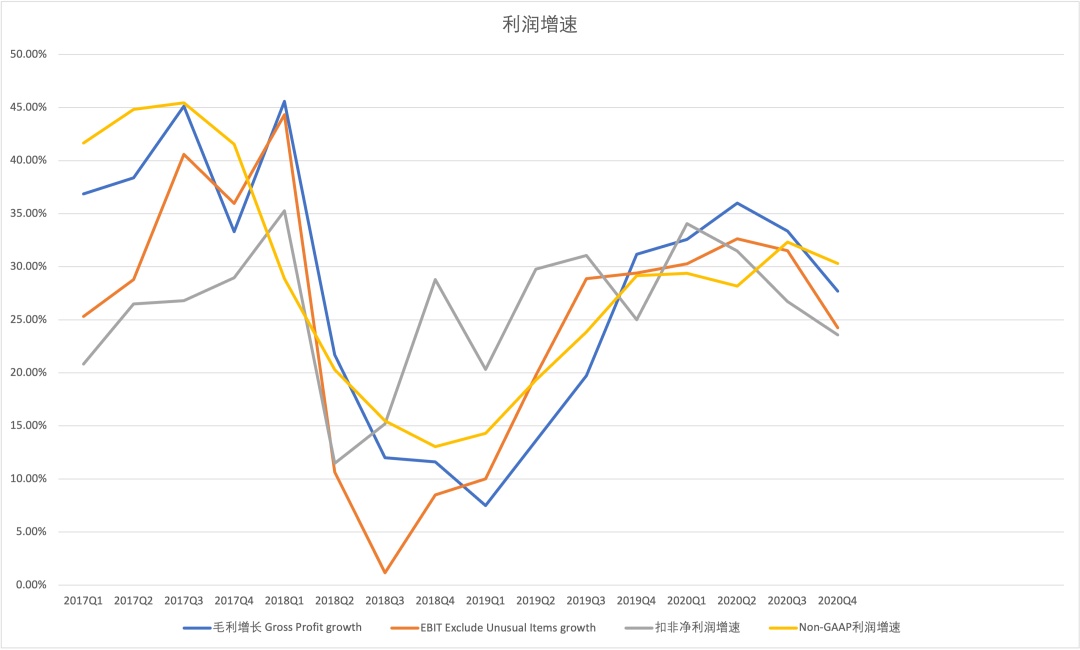 从下面这张图可以看出,2018 年是腾讯业绩的低点,三季度扣非净利润几乎零增长。我清晰地记得,那年有两篇很火的文章,在全网引起了热烈的讨论。它们的名字分别叫《腾讯没有梦想》和《全面反思腾讯的战略》。感谢这两位热心作者,帮我创造了不到 300 港币买入腾讯的机会。