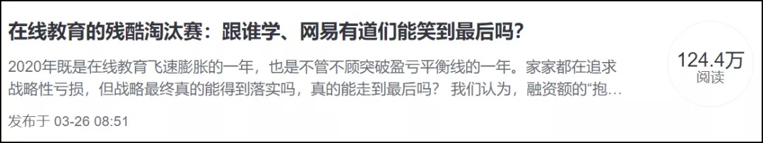 3 月 26 日发布《在线教育的残酷淘汰赛:跟谁学、网易有道们能笑到最后吗?》。其中标题里出现的 “跟谁学和网易有道”,它们的跌幅恰恰是 K12 在线教育公司中最大的。