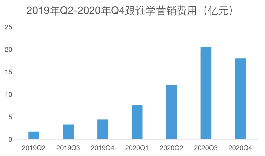 集中投放造成跟谁学 2020 年分季度的营销费用大涨: