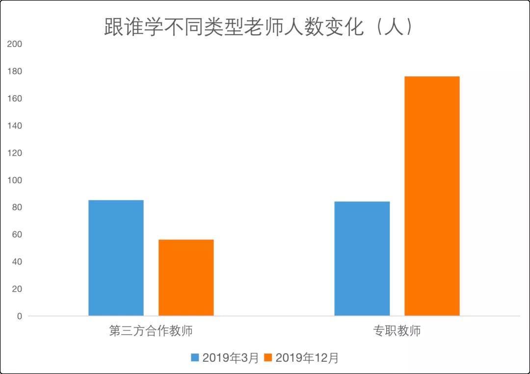 2019 年,第三方合作教师减少到 56 人,而专职教师人数增加到 176 人。