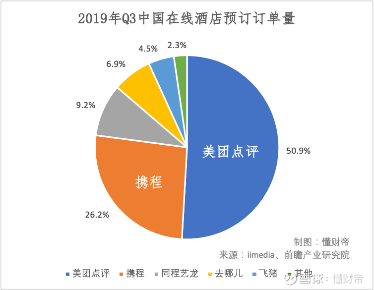 随着 “富二代” 竞争者们的相继涌入,携程市场份额逐渐下滑。2019Q3,美团在线酒店预订市场超越携程,跃居行业第一。