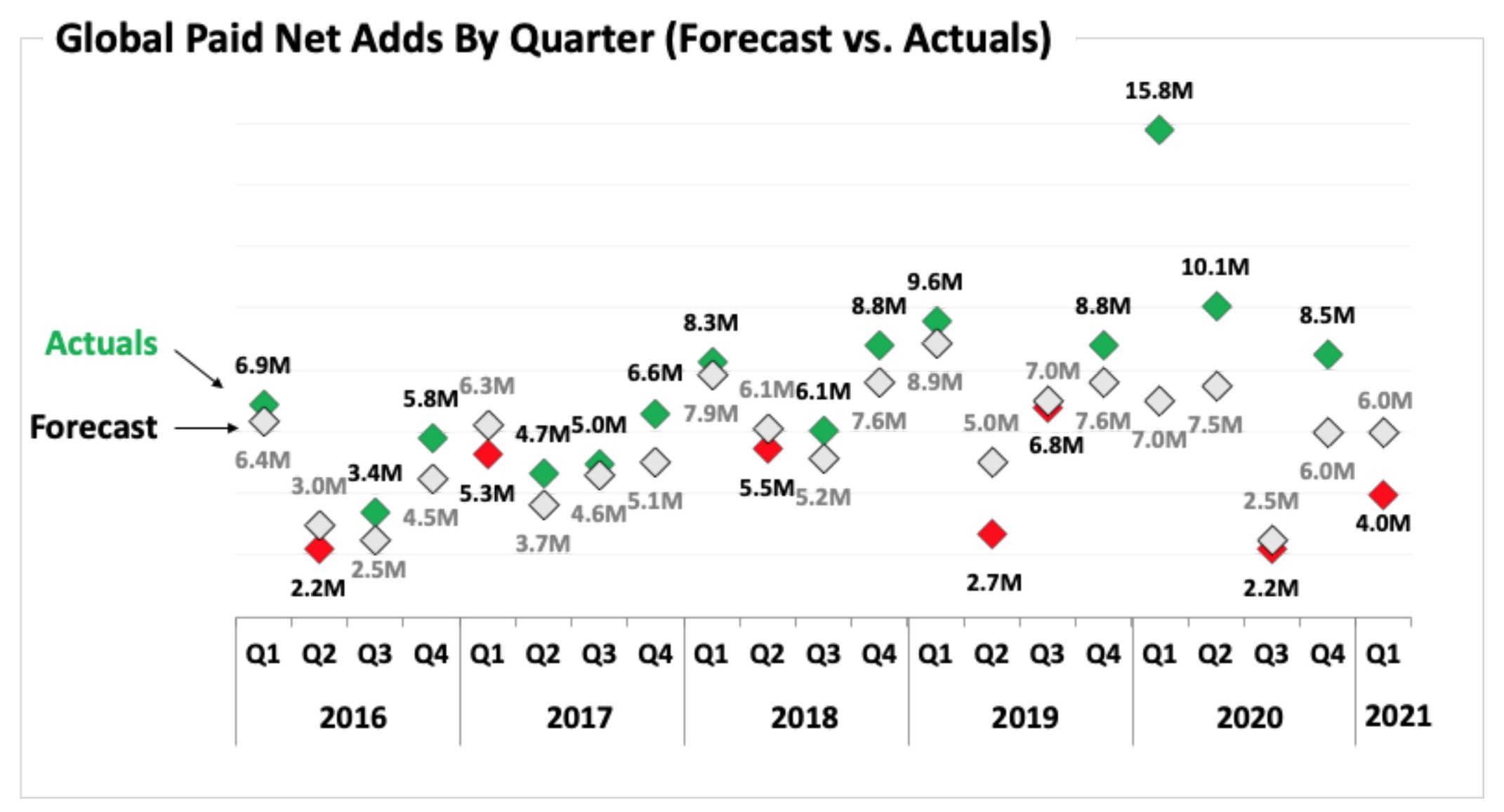 Q1 :去年一季度 1500 万净增,今年与华尔街一致预期和指引差距还挺大,是否有其他比较重要的原因?