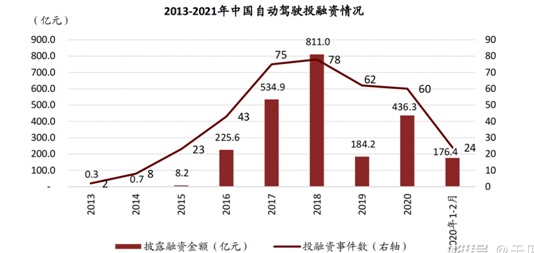 一级市场投融资是对产业的直观反映,在经历了 2016-2018 的疯狂后,产业和投资者意识到高级别的自动驾驶没有想象中容易,因而投资在 2019 年熄了火。自 2020 年开始,自动驾驶资本市场便已开始逐步回暖,据不完全统计,2020 年自动驾驶公司融资事件已经接近 30 起,融资总金额已达到 1000 亿人民币。进入 2021 年,智能汽车开启下半场,仅仅 3 个月的时间国内自动驾驶投融资额就超过了 2019 年全年。