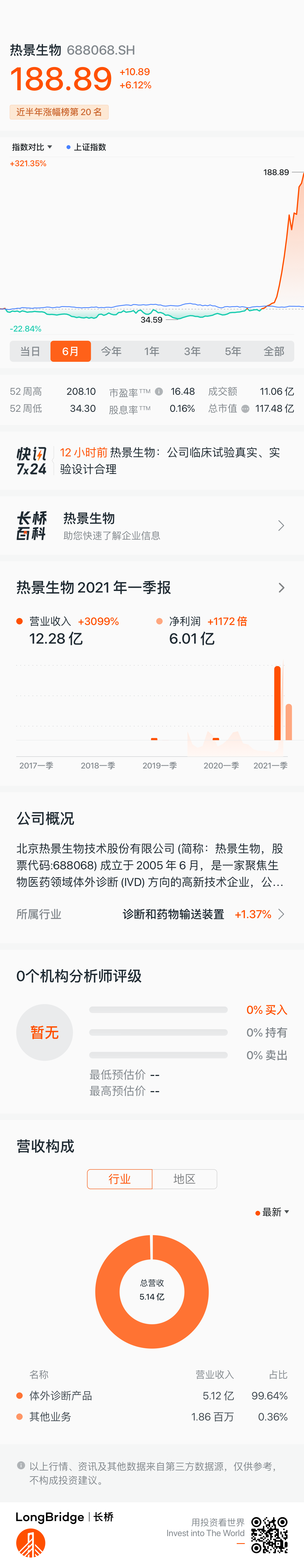 $Hotgen(688068.SH) 今年最火的医药股,翻了快 6 倍了,一个月翻了 3 倍多,霸气