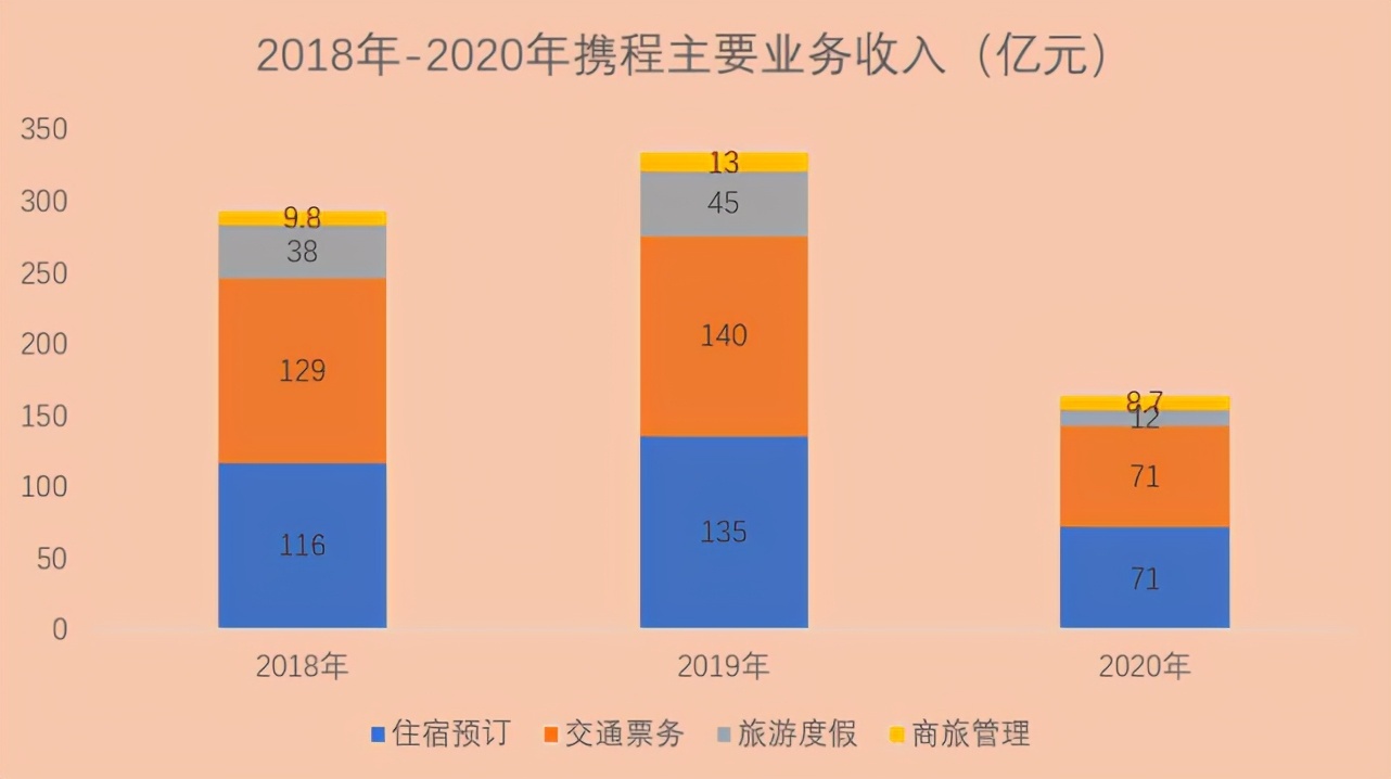 或许正是这种保守的经营方式,让携程在接下来的疫情中全面亏损。招股书显示,携程 2020 年营收为 183.16 亿元,相比 2019 年的 357 亿元,同比大降 49%,和 2018 年同期相比减少 41%;净亏损 33 亿元,相比于 2019 年 70 亿净利润,同比下滑 146%。