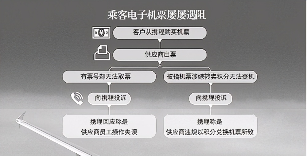 今年 4 月 22 日,一用户在携程购买国航机票后投诉:“在携程买了国航的机票,今天查看突然降半价,客服承诺全额退款突然降半价的机票,携程客服去核实又说不给退了。”