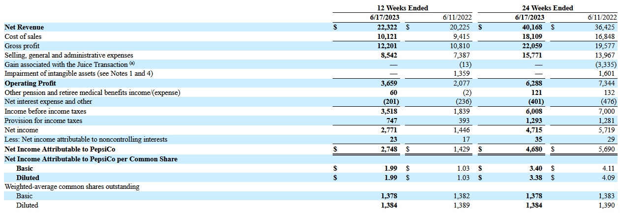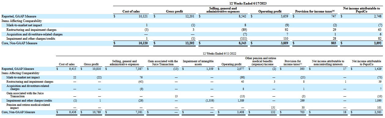 非 GAAP 下,Q2 归属于公司净利润为 28.92 亿美元,同比增长 12%。每股收益为 2.09 美元,较市场预期高出 0.13 美元,表现同样优秀。增长差距这么明显的原因主要是上年同期百事可乐无形资产减值部分带来的亏损影响。