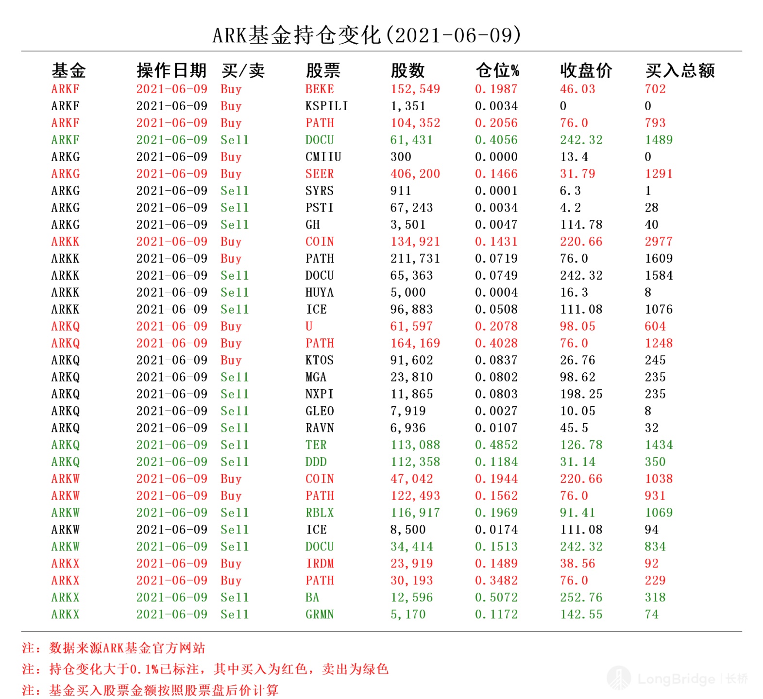 ARK 基金 2021-06-09 持仓变化 - 持续买入 PATH、U 卖出 DOCU,RBLX
