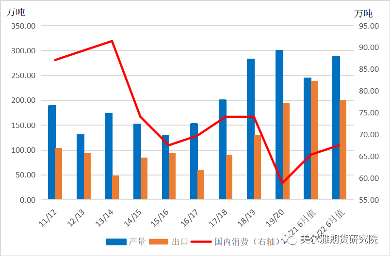 产销方面,与美国类似,巴西棉花主要用于出口,出口量可占到产量的 60% 以上,已成为世界第二大棉花出口国,其国内消费量相对较少,如图 16 所示。