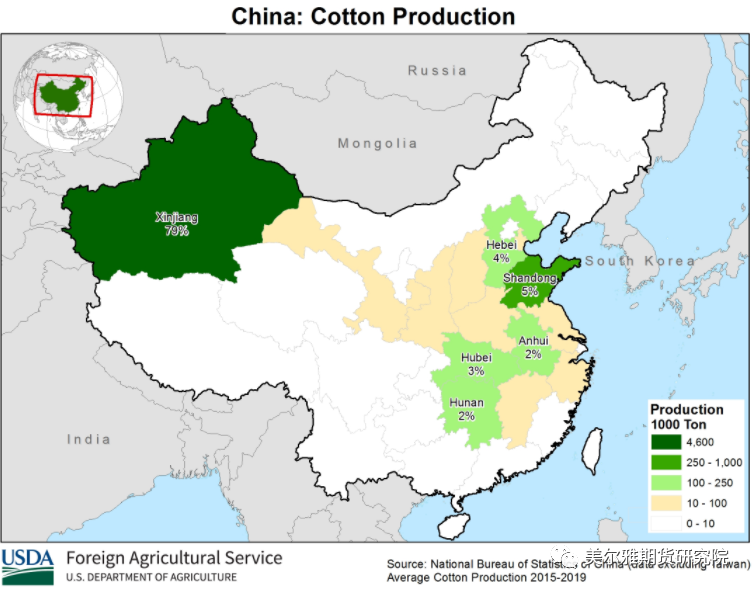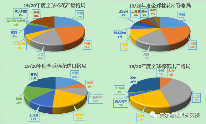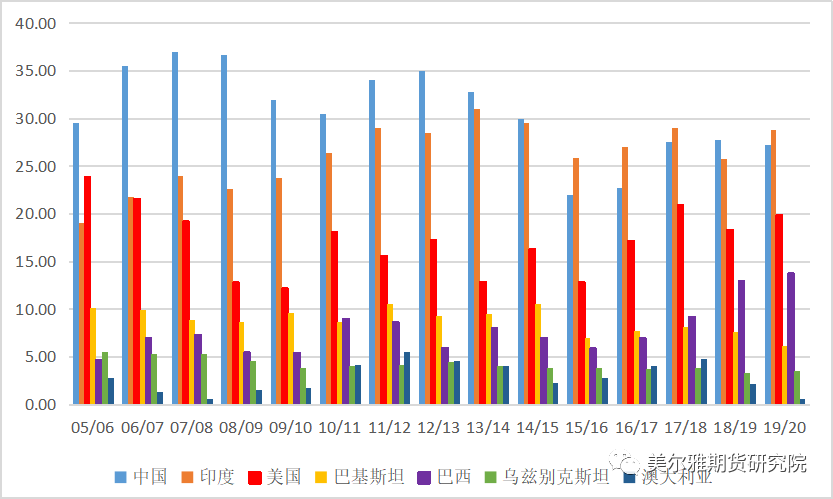 棉花主产国主要有中国、印度、美国、巴西、巴基斯坦、乌兹别克斯坦、澳大利亚等国家,上述七国棉花产量可占到全球棉花产量的 80% 以上。