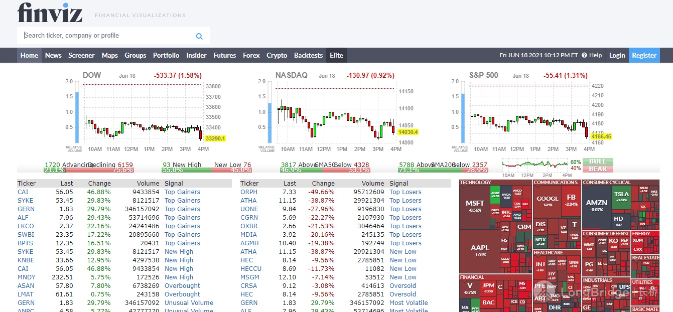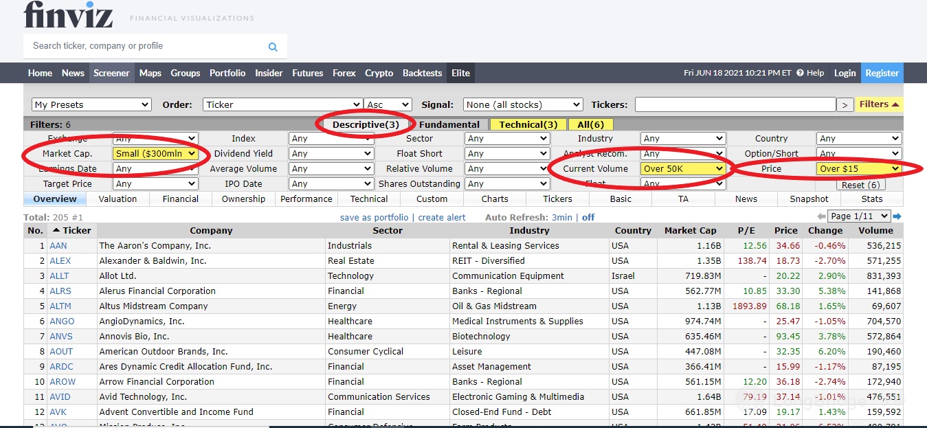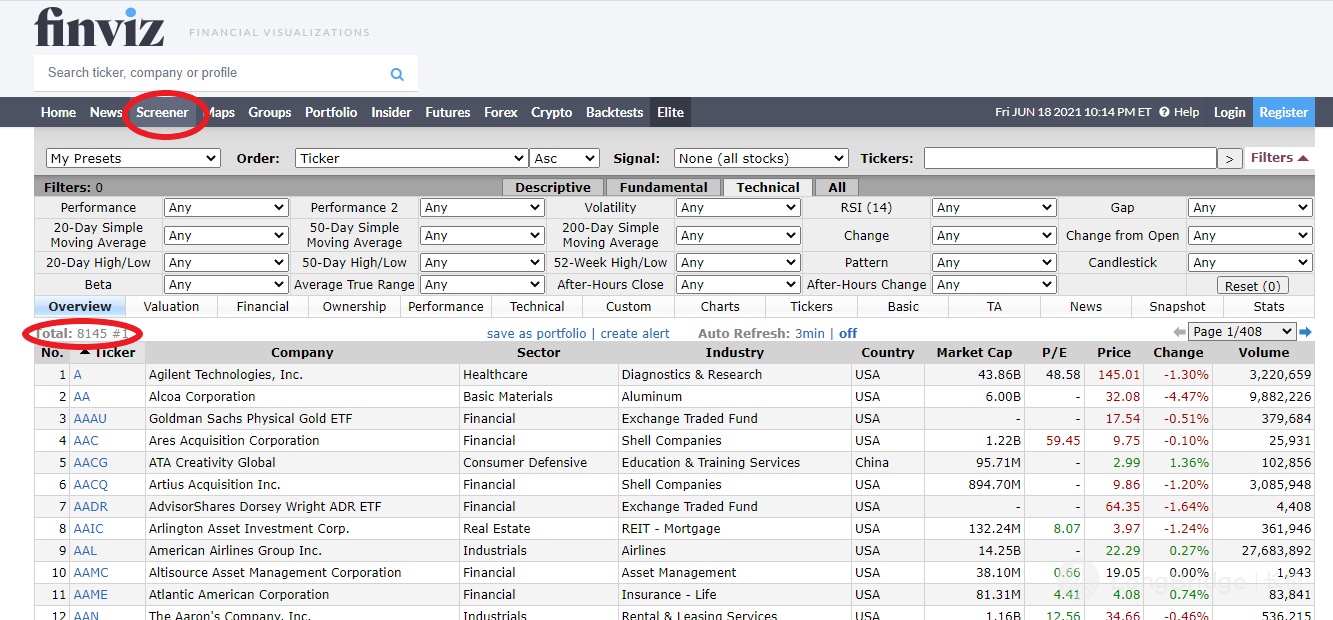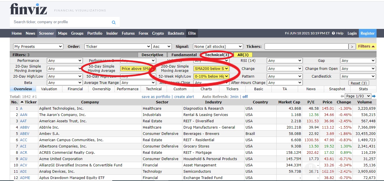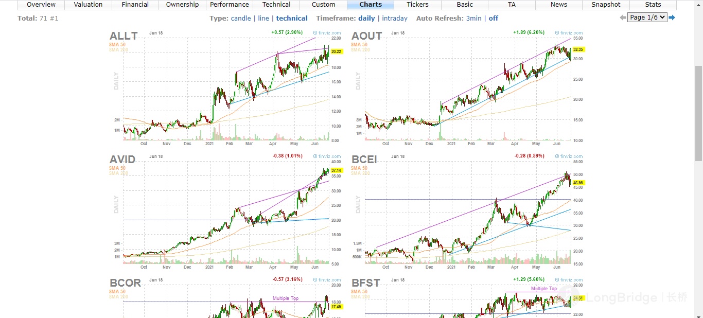 笔者惯常使用 finviz 这个网站,作美股的主要筛选工具,原因在于完全免费、较能持到符合第二阶段趋势模版的股票、图表功能节省筛选时间。