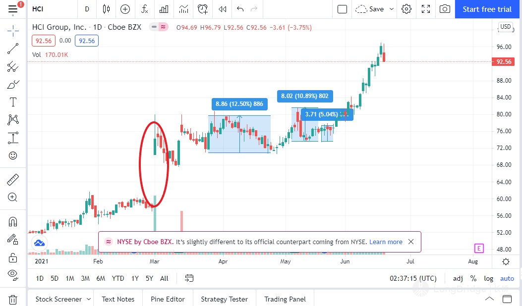 第六个步骤: 凭经验找出 VCP (Volatility Contraction Pattern) 价格波动收缩型态的股票。