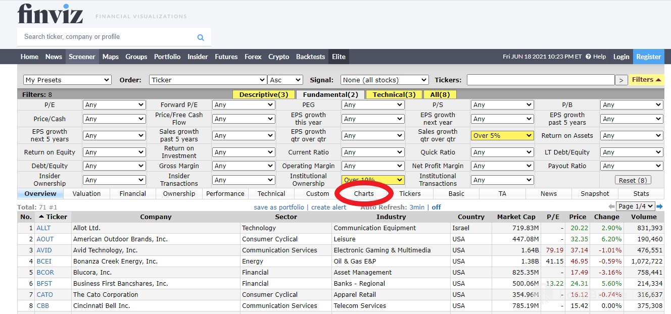 第五个步骤: 按 Charts 得出筛选出来股票的图表