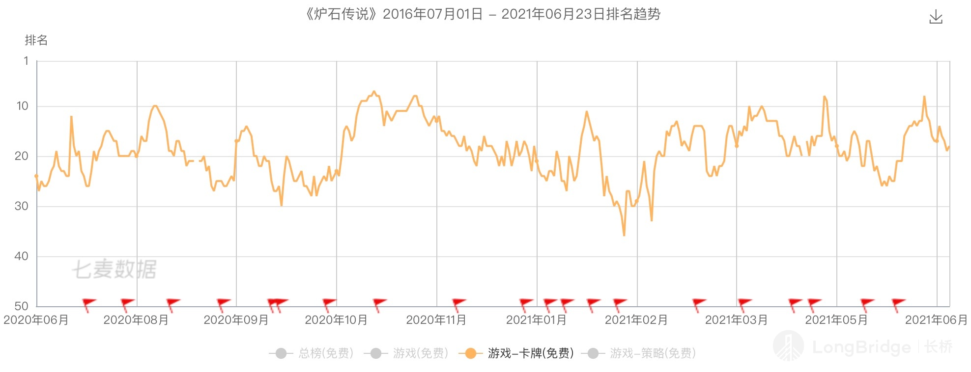 近年来,暴雪旗下的多款端游 IP 正在逐步被开发为手游,发布后表现稳固。以《炉石传说手游》为例,虽然上线已有 7 年,但国服区当前下载量在卡牌游戏排行榜中仍然稳定在 20 名左右。