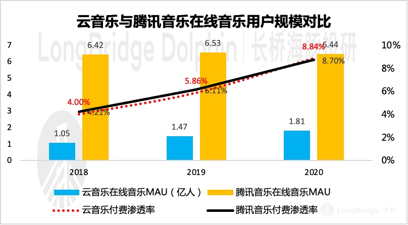 数据来源:网易云音乐招股说明书、腾讯音乐年报、海豚投研整理