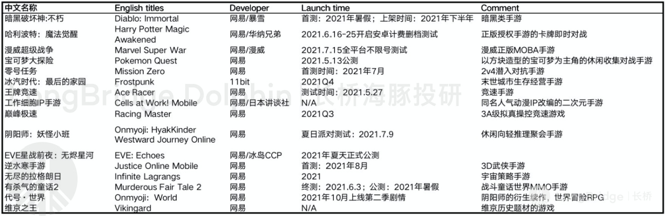例如,海豚君拿网易目前主要的出海自研手游举例: