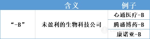 “B”是英文中 “Biotech Company” 的缩写,指未盈利的生物科技公司,例如心通医疗-B、腾盛博药-B、康诺亚-B 等等。2018 年港股发生了重大变革,未盈利的生物科技公司被允许上市。