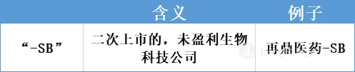 根据上面两个的含义,大家应该也就对 “-SB” 理解了。“再鼎医药-SB”也就是在香港二次上市的未盈利的生物科技公司。