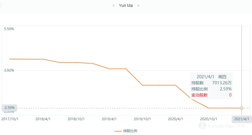 第二种就是阿里巴巴实行的合伙人制度。首先阿里巴巴的股权结构是十分分散的,在阿里高速发展的过程中,大量的股权被稀释。截止到今年 4 月 1 日,马云也只占了 2.59% 的股份。