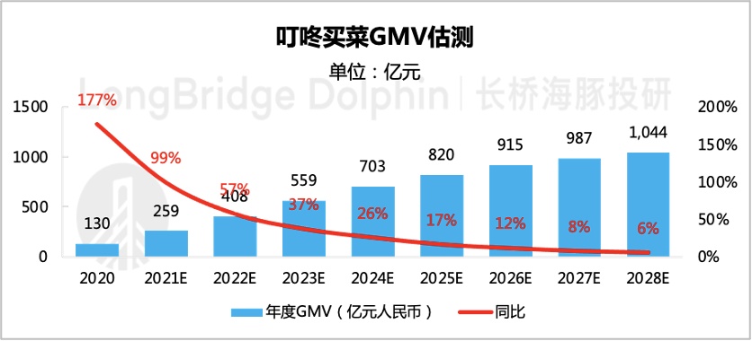 在以上假设下,叮咚买菜 GMV 变化趋势如下: