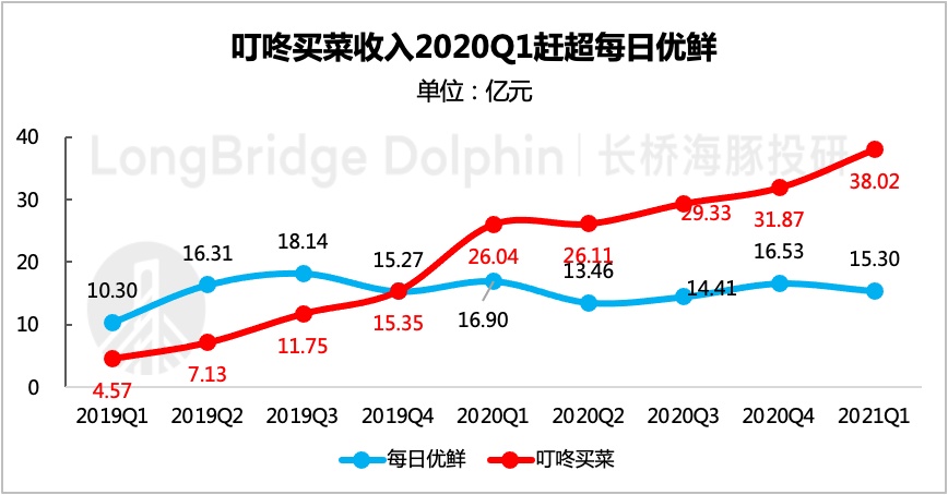 但涉及到具体的打磨方向上,两者也有不同的想法。海豚君认为,这或许是真正使得叮咚买菜对每日优鲜实现赶超以及拉大差距的关键因素。