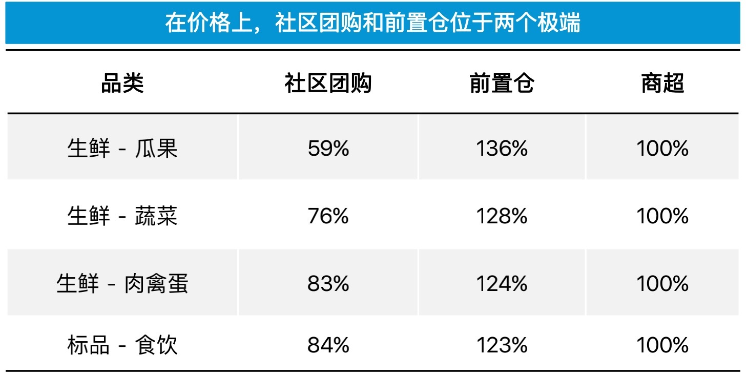 不可否认,前置仓的核心用户是一群愿意以一定的金钱换取 “时间” 和 “质量” 的人群,在前置仓的产品单价显著高于社区团购、线下商超的情况下,他们对于商品质量失控的容忍度也会更低。