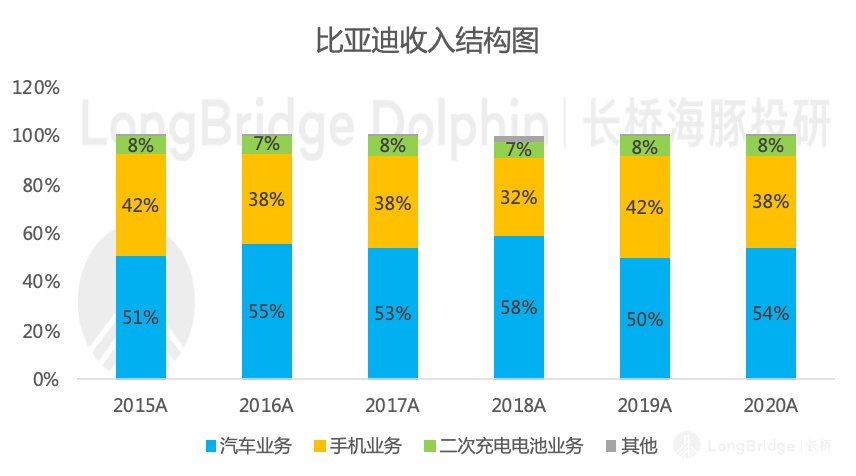公司手机业务主要通过 2007 年分拆出来并成功在港股上市的比亚迪电子(00285.HK)来运营,产品端分为手机电脑、汽车智能系统和新型智能产品等三条产品线。
