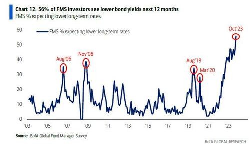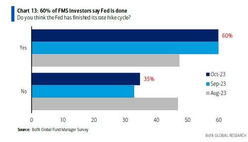 调查结果还显示,60% 的投资者相信美联储已经结束了加息周期,债券收益率将在未来 12 个月内下降。