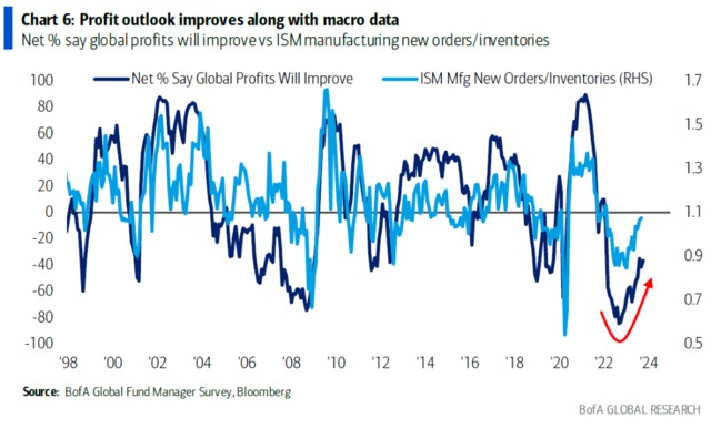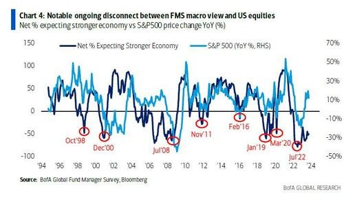 Hartnett 和其他分析师表示,“股市与增长预期之间持续脱节”。即使投资者对未来经济增长预期悲观,但美国股市依然保持了良好环比增长。
