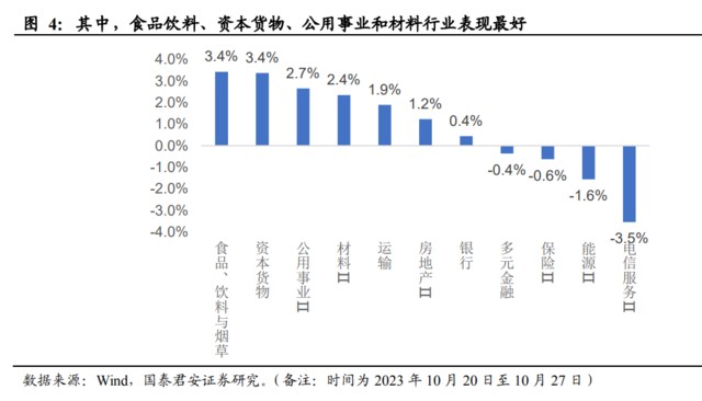 上週(10 月 20 至 10 月 27 日),1)中國公佈將增發 1 萬億元國債,支持災後恢復重建和提升防災減災救災能力,財政赤字率將提升,即意味着中央加槓桿支持經濟發展;2)中美金融工作組 11 月 25 日將舉行視頻會議,市場情緒轉暖;3)此外,中國香港將下調股票印花税,由 0.13% 下調至 0.1%,提升港股市場吸引力;4)海外方面,10 年期美債收益率突破 5.0% 後,在週四晚回落至 4.85%,恒生科技指數在週五反彈跑贏大盤和紅利策略。上週,恒生港股通高股息指數和中證港股通紅利指數和分別累計上漲 0.98% 和下跌 0.73%,跑輸大盤。