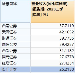 Wind 數據顯示,長江證券的營業收入同比增長進入了業內靠前行業。
