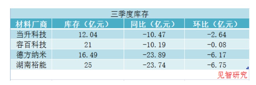 另一方面,儘管已經進入新能源汽車的旺季,但是鋰電產業鏈的下游企業對補庫並不積極。鋰鹽廠商議價能力較弱,這從正極材料廠商三季度的存貨下滑趨勢中也可見一斑。