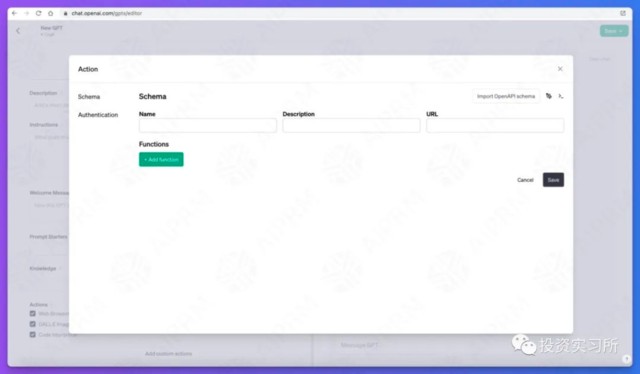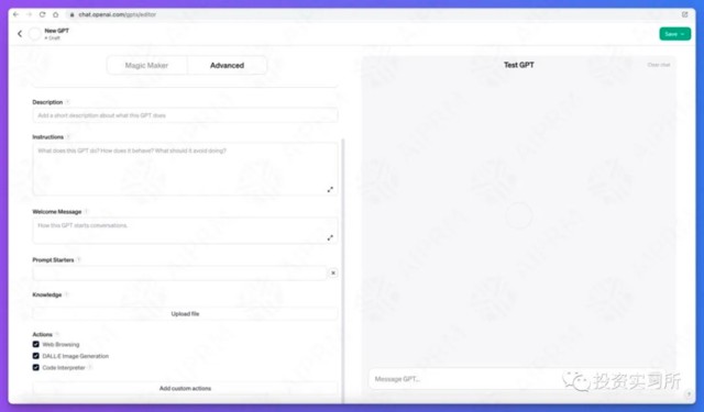 在高級功能這塊,就是上面提到的自定義模塊,比方説設置 GPT 的名字、描述、歡迎語以及各種操作(Actions)等,甚至自己定製 action。