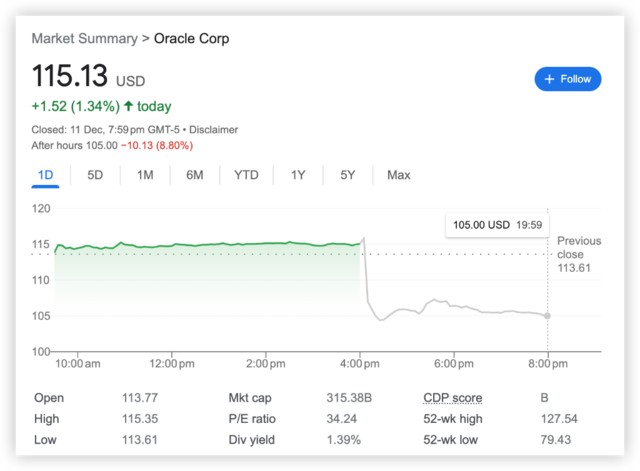 趕上了 AI 東風的甲骨文,一度以 “人工智能界的 Netflix” 自居。然而,公司週一公佈的業績不僅遜於市場一致預期,也低於公司自身指引。