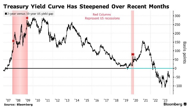 包括双线资本的创始人、有 “新债王” 之称的冈拉克、太平洋投资管理的 “老债王” 格罗斯和亿万富翁投资者阿克曼在内的大投资者都预测,收益率曲线将恢复正常。冈拉克表示,10 年期美债收益率明年将降至 3% 的低点,而格罗斯和阿克曼认为,到 2024 年底,收益率可能会出现正斜率。