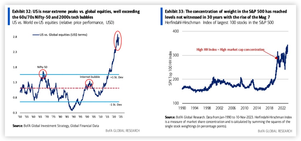 風險 6:科技股泡沫破裂。類似 70 年代的泡沫 50,科技巨頭的估值現在太貴、大盤的市場集中度已經過高。