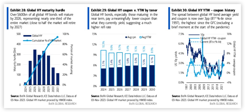 美銀指出,到 2026 年,全球有超過 6000 億美元的高收益債券到期,佔全球市場的近 1/3。