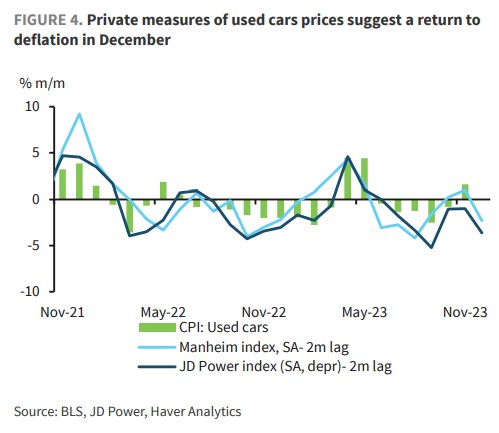 野村表示,信贷条件收紧和消费者对价格的敏感度提高,压低了二手车价格;新车价格可能仍然保持不变,促销激励措施带来的增长比预期要慢,12 月环比温和增长 0.2%。高盛预计 12 月份二手车价格将下降 1.1%,新车价格将下降 0.2%。