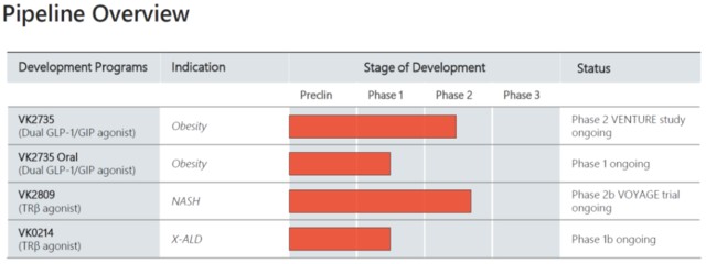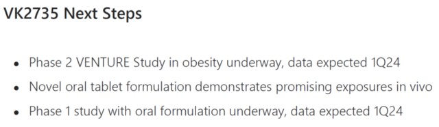 Viking 還在探索 VK2735 口服版的臨牀應用,一期臨牀數據預計一季度也將讀出。
